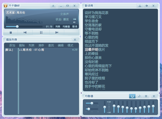 一个集播放、音效、转换、歌词等多种功能于一身的老牌音乐播放器,拥有自主研发的全新音频引擎,支持DirectSound、内核音频流(Kernel Streaming)和ASIO音频流输出、AddIn插件扩展技术,具有资源占用低、运行效率高、扩展能力强等优点。
